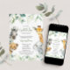 Cute a Little Wild One is On the Way baby shower invitation features pretty greenery with cute watercolor safari animals. Personalise with your details.