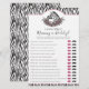 Framed by a bold black-and-white zebra print border and finished with a coordinating patterned back, the game includes 14 fun questions where guests guess “Mommy or Daddy” by circling the lips (Mommy) or mustache (Daddy) icon. The guest with the most correct answers wins. All text is editable for easy customization. Perfect for zebra baby showers, safari themes, wild one celebrations, and baby girl shower games, adding a stylish and entertaining activity for guests.