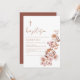 Celebrate the baptism with this elegant boho terracotta little wildflower themed, baptism invitation with a modern minimalist simple watercolor rustic boho floral and simple cross.