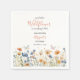 Celebrate your little one with this sweet “Our Little Wildflower” 1st Birthday napkin featuring a soft white background and a charming border of delicate wildflowers along the bottom of the card. Gentle butterflies flutter above the blooms in soft shades of orange, blue, and yellow, creating a whimsical garden feel. The word “Wildflower” is written in a beautiful script font in a color that complements the floral palette, while the party details are displayed in a mix of script and serif fonts for a stylish and easy-to-read design. This napkin is simple to customize,