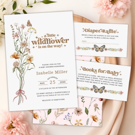 Little Wildflower Diaper Raffle Baby Shower Game Enclosure Card
