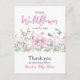 Celebrate the arrival of a little baby girl with this Wildflower themed Little Wild Flower Pink Bow Floral Girl Baby Shower Thank you Card! This charming design features a bow, butterflies and flowers in pink, blue and green colors is perfect for a baby shower It's a girl themed party. Customize the details effortlessly to create the perfect decor for your special event.