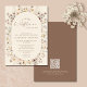 This sophisticated "A Little Wildflower Is On the Way" baby shower invitation sets a serene and elegant tone for your celebration. The front features a charming floral wreath of soft watercolor wildflowers in a calming, gender-neutral palette of ivory, muted taupe, and soft blush. All event details are beautifully centred within a classic arched oval panel, ensuring clarity and readability. The reverse side complements the design with a solid, rich brown backing that adds depth and warmth, and includes a convenient QR code for guests to instantly access your registry, event directions, or RSVP information. This design is the perfect choice for a sophisticated spring or fall shower, offering timeless elegance and modern functionality. Customise the text with your event details to create a truly beautiful announcement for your celebration! Design by Anna Szalacha © Happy Ann Designs.