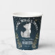 Little wolf themed birthday party monogrammed paper cups, cute wolf pup dark starry night background, young wild and three wolf party personalised table decor printed paper cups