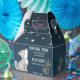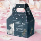 Little wolf themed birthday party wild one personalised favour box , cute howling wolf pup dark starry night background.