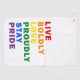 Live Boldly Love Proudly Stay Pride Golf Towel Design in modern typography that reads "LIVE BOLDLY LOVE PROUDLY STAY PRIDE" in a simple yet clean minimalist design. Simple design in Pride rainbow colours that works great for anyone.