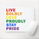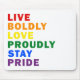 Live Boldly Love Proudly Stay Pride Mousepad Design in modern typography that reads "LIVE BOLDLY LOVE PROUDLY STAY PRIDE" in a simple yet clean minimalist design. Simple design in Pride rainbow colours that works great for anyone.