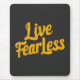 This inspiring design presents a bold and fluid typography with the words "Live Fearless" in uppercase letters. The colors are a gradient of golden yellow to a lighter yellow, evoking warmth, optimism and courage. The style of the font is modern and dynamic, with soft curves that give an impression of movement and positive energy. This design captures the essence of motivation with its powerful message that encourages people to live fully without being hindered by fear.