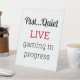 Preserve your gaming sanity with this attractive and straightforward message. Give others a heads up to be quiet, when they come into your space. Featuring a combination of script and modern typography, this pedestal sign gets straight to the point. Place where it can easily be seen and play in peace!