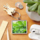 This keychain encourages you to 'Live Green'. Features a close-up of lush green summer leaves after a rain. ~ Part of The Green Collection. ~