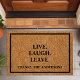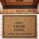 Welcome guests with a smile before they even step inside! The "Live, Laugh, Leave" doormat features a playful twist on a classic greeting, perfect for anyone who enjoys a good laugh. This doormat is customisable, allowing you to add a personal touch that makes it uniquely yours. Framed with a sleek black border, it's designed to withstand the elements while adding a touch of humour to your entryway. Ideal for personal use or as a humourous gift, this doormat ensures your home stands out in the most delightful way.