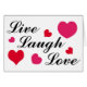 Live, Laugh, Love design with red and pink heart decoration