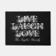 Live Laugh Love doormat with custom family name. Add your own personalised surname. Vintage typography template with elegant script lettering. Black and white door mat design for home or vacation house. Available in medium and large. Beautiful home decor gifts for friends, family, couple etc.
