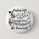 A button with a heart and music notes and sayings to encourage others to enjoy life , to live,laugh and love each day and to be themselves. Celebrate each day of your life.