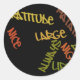 Yellow/Orange: The dominant colours used for several words, creating a bright and energetic feel that stands out prominently against the dark backdrop.