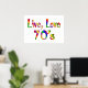 Share your love for the 1970s with a colourful design. The words - Live Love 70's - show how much the retro 70s mean in your life.
