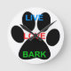 LIVE LOVE BARK Dog Paw Print Round Clock