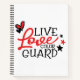 This cute design says Live Love Colorguard in black and red with fun heart and stars accents
