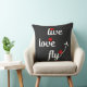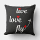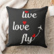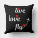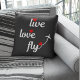Live Love Fly Typography with Aeroplane & Hearts Cushion