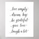 Motivational quote - Live simply, dream big, be grateful, give love, laugh a lot - decor - office - room