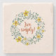 The coasters are gorgeous, a quality feel and heavy weight. They look like a precious archeological find. A rustic stone juxtaposed with a modern floral black and white print. I like the way the print goes slightly imperfect on the cut stone edges giving them a kind-of natural beauty.
