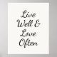 Bring a touch of daily inspiration and warmth to your home with this "Live Well & Love Often" wall art. Featuring a sophisticated black script on a clean white background, this design fits perfectly with modern farmhouse, minimalist, or contemporary decor styles. Whether you're decorating a living room gallery wall, an entryway, or a cozy bedroom, this positive mantra serves as a beautiful reminder to focus on what matters most. High-quality typography ensures it looks sharp and elegant in any frame.