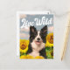 A beautiful Border Collie in a sunflower field with the quote Live Wild