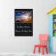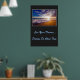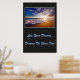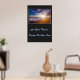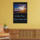 Poster shown with a photo print of a beautiful beach sunset. Poster background is a deep charcoal colour.