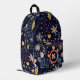 Lively Whimsical Flowers and Leaves on Navy Blue Printed Backpack