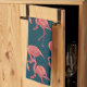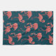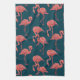 Vector pattern with hand drawn flamingos in living coral colour on dark blue background.