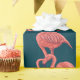 Vector pattern with hand drawn flamingos in living coral colour on dark blue background.