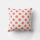 Living coral polka dots on white cushion