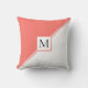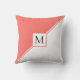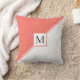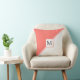Living coral architect throw pillow with monogram. It includes two diagonal stripes one coral and one white that separate the card in two triangles. A white square is on the centre with your monogram.