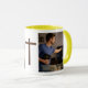 Great product, good delivery time, and an awesome idea for a gift! It was even better than I could have imagined, the customisation is incredible. The colour is perfect, it's dishwashable and microwaveable, the text print on the mug looks exactly like I wanted it to look and best of all, it's a large sized mug that you can drink plenty of coffee or whatever you want! I gifted this to my father and he loves it. He drinks coffee with that mug everyday :) I recommend.