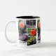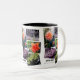 The original artwork on this Mug is a group of original photographs by MaeFlowers of orange flowers, lavender flowers and tropical leaves. The colours range from soft pastels to bright, with a variety of greens in shadow and bright light. On the mug it says "LIVING GREEN with orange and lavender" in one corner of the design.
