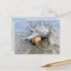 Florida wild sea snail photography postcard. A living horse conch seashell, with orange snail inside, is on the mud left at low tide. A lucky find while boating the saltwater river, this large mollusk is the state shell of Florida. This shell is not very pretty, with barnacles on it, but it is typical of what we see in the wild. Add a message to the back of the card, which has a beach scene background.