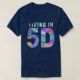 Set the example with this Living in 5D t-shirt. Time to exit 3D dualistic living and enter into magical oneness! This design is featured on a navy t-shirt. Living in 5 D is filled with a hologram-feeling rainbow pattern. Put out a high vibrating frequency!