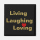 Inspirational “Living, Laughing and Loving” black and gold magnet. The black background color can be changed by the customer.