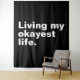Grab this "Living my okayest life." funny saying tee shirt to show your sense of humour by wearing this basic cool text style. for Black and White Contemporary Art Lovers. I'm sure that it can spark many conversations and will help with breaking the ice. This funny design is a great gift idea for employees, colleagues, coworkers, managers, supervisors, friends, or family, and also makes a great birthday, holiday gift, or Christmas present. (YOU CAN CHANGE AND CUSTOMIZE THIS TEXT DESIGN OR ANY TEXT YOU WANT IN TEXTIFY STORE!).