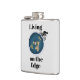 The flask itself is fine. It’s a cheap flask, obviously bought in bulk, however am prepared to overlook that. Given that it is a personalized item, I would have liked to have seen gift boxing instead of the generic packaging. Terrible printing, and/or quality. It’s a cheap, tacky vinyl. It is not cut straight and is also applied in a way that it is overhanging the bottom, causing the glue to catch on items and it will eventually roll and tear, damaging the wrap.