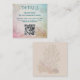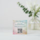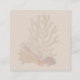 Living seas small, square enclosure cards with QR code. A sea themed background, with sea turtles and seashells, is in nature colours of blue, tan and coral pink. Send guests to your wedding website for all the details of the big day. Include a card title, heading and short lines of information. More seashells and coral are on the back.