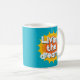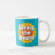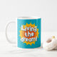 Living the dream! cool coffee mug gift for him or her. Cute gift with inspirational quote. Vintage typography design with red hot sun logo. Unique cup for successful colleague, coworker, corporate employee, boss, dad, father, lottery winner, business owner, friends, family, wife, husband, grandpa etc.