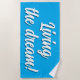 Living the dream custom colour beach towel with quote. Cool towel with inspirational quote. Bold typography design with script sign letters. Summer gifts for colleague, coworker, corporate employee, boss, staff, personnel, business owner, friends, family, wife, husband, grandpa etc. Also fun for Christmas or Birthday! Great for sports, beach, sailing, boating, pool and more.