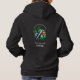 Hoodie to help spread awareness for Bipolar Disorder with a black, white and green striped awareness ribbon and flowers. An inspirational quote with the words, "Living with Bipolar, thriving with courage.”