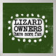 "Lizard Owners Have More Fun" is a cute text design in green with black text, along with a white accent shape and white textured whimsical dots surrounding it.