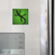 A small lizard is silhouetted against a green leaf. A bright light shines from behind. Computer art by Kathie Miller.