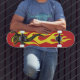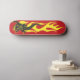 This black and yellow lizard is set on yellow flames with a red background. This fun reptile makes a colourful skateboard.