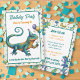 Cute boy's birthday party invitations with a lizard theme! Blue, turquoise, orang and yellow hues with cute lizards climbing up the invitations.