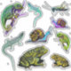 Lizards, frogs, chameleon, snails