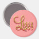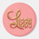 Gold lettering of the name Lizzy on a pink background. Makes a great inexpensive for someone named Lizzy.